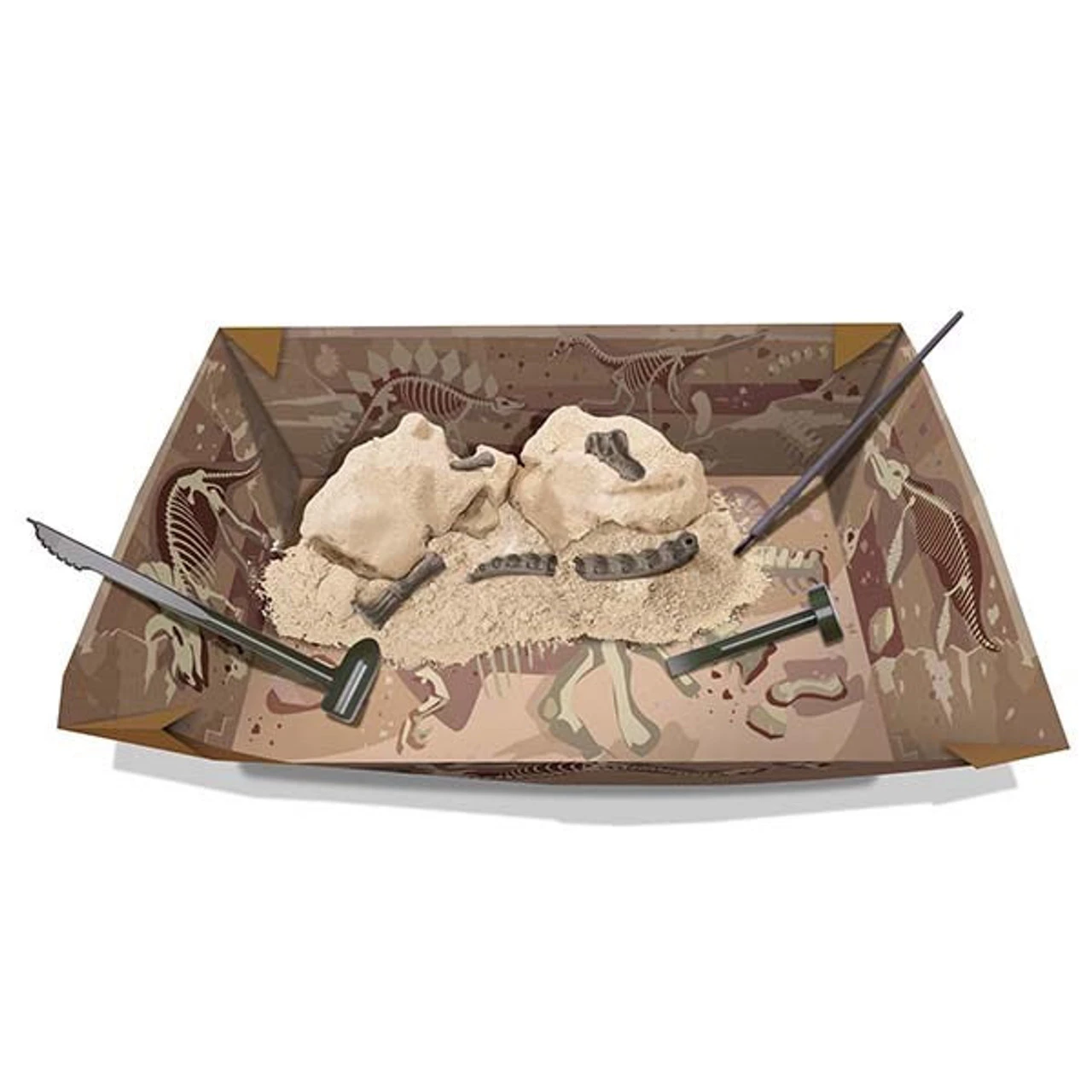 Carefully dig away the plaster to find the hidden dinosaur bones.