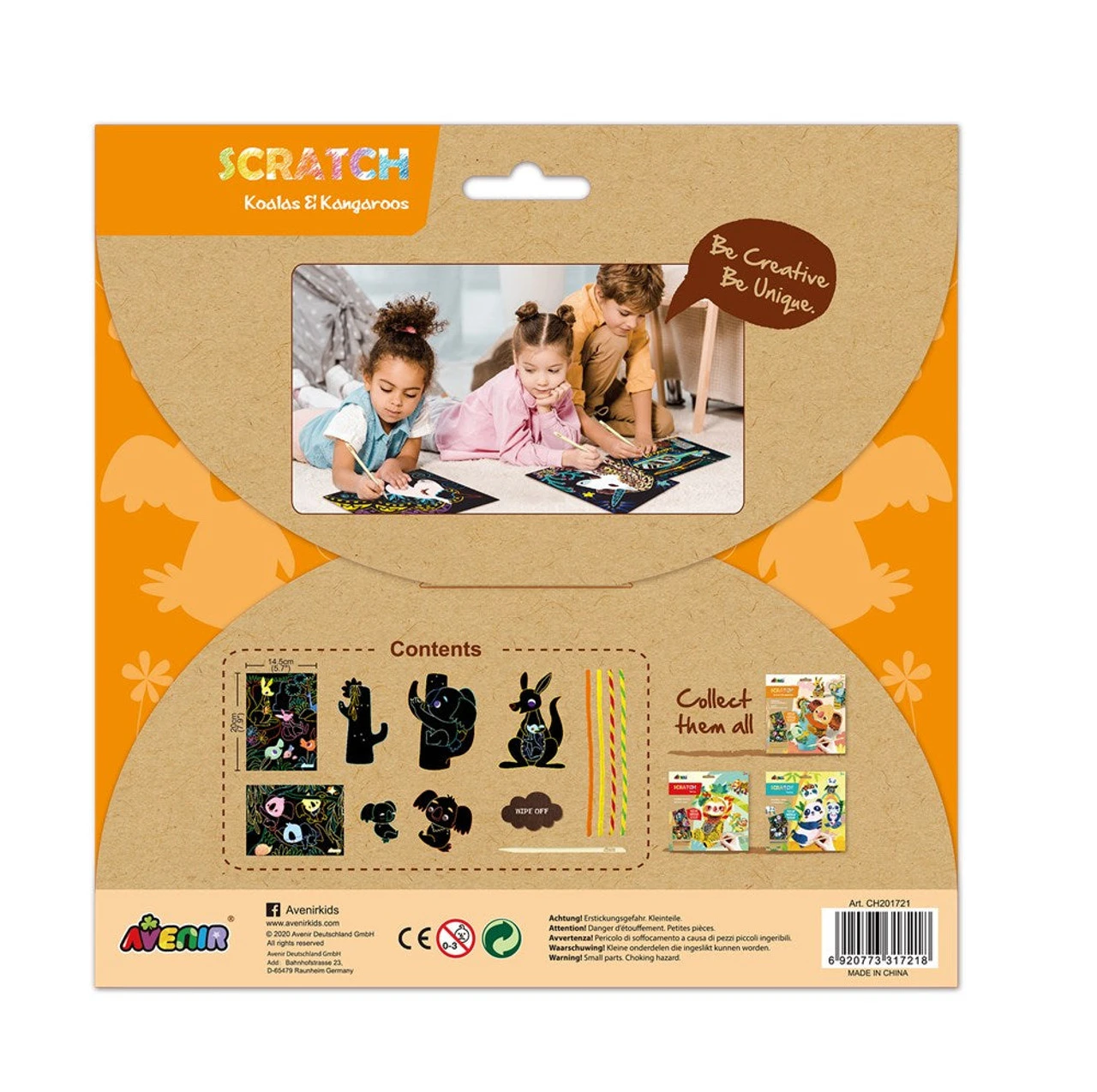 Simply scratch the pre-stenciled black art paper to reveal the colour.