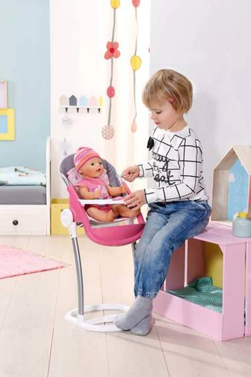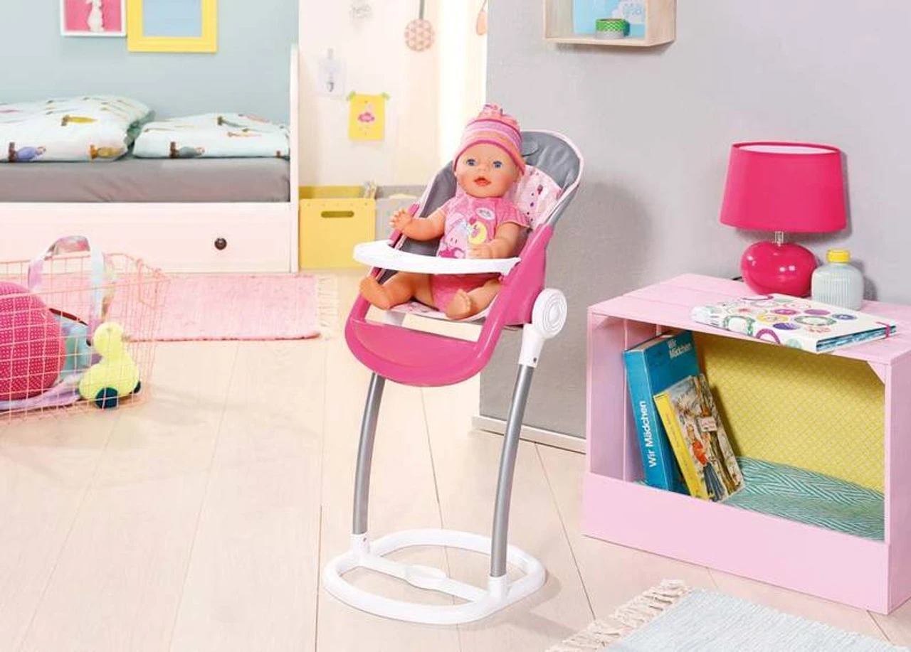 BABY born® Highchair with a comfortably shaped seat and removable table made from robust plastic. Easy to clean.