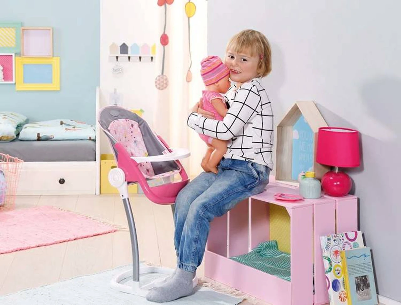 Eating together is great! Food tastes much better when everyone is sitting at the table together. With this practical and trendy highchair, BABY born® can take part in every meal. Robust yet light, it is at hand whenever you need it and great for the occasional snack too. The little one will be very comfortable in the preformed seat. The stylishly shaped table is great for playing too.