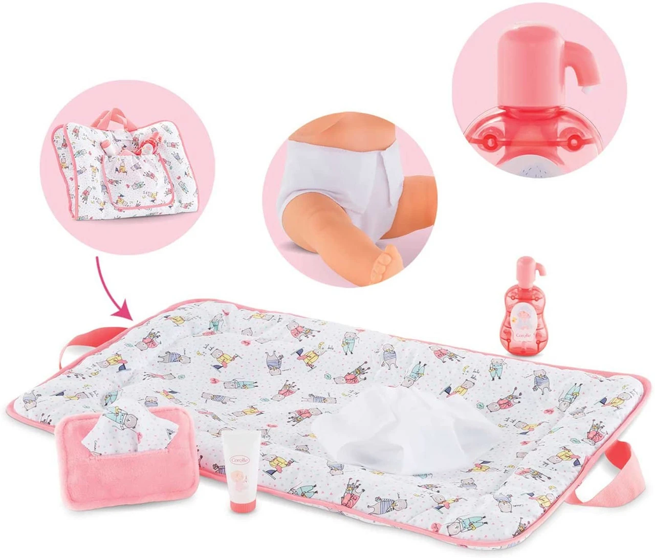 The Changing Accessories Set gives children everything they need to change their large baby doll.