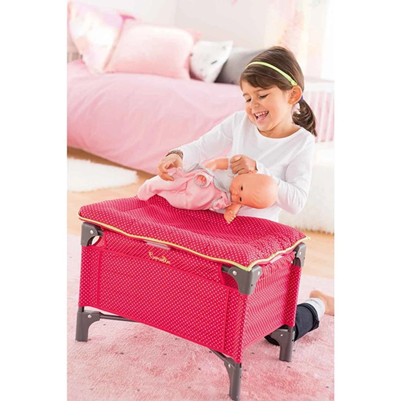 An accessory for big kids! A bed and a changing table for large Corolle baby dolls.