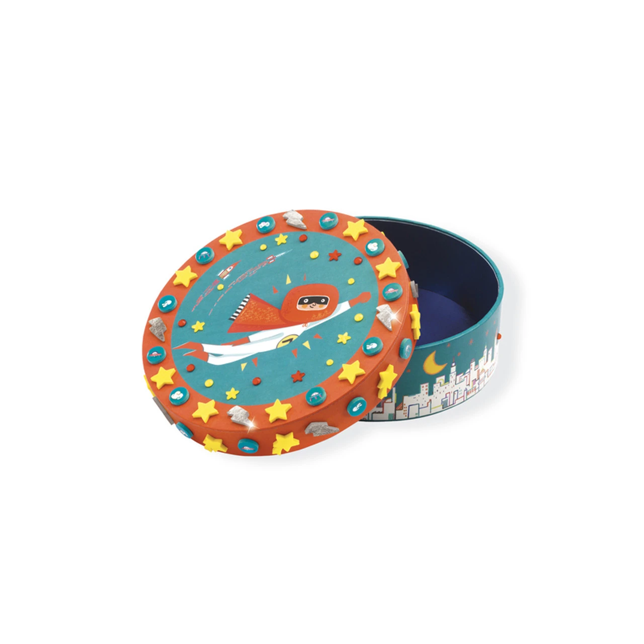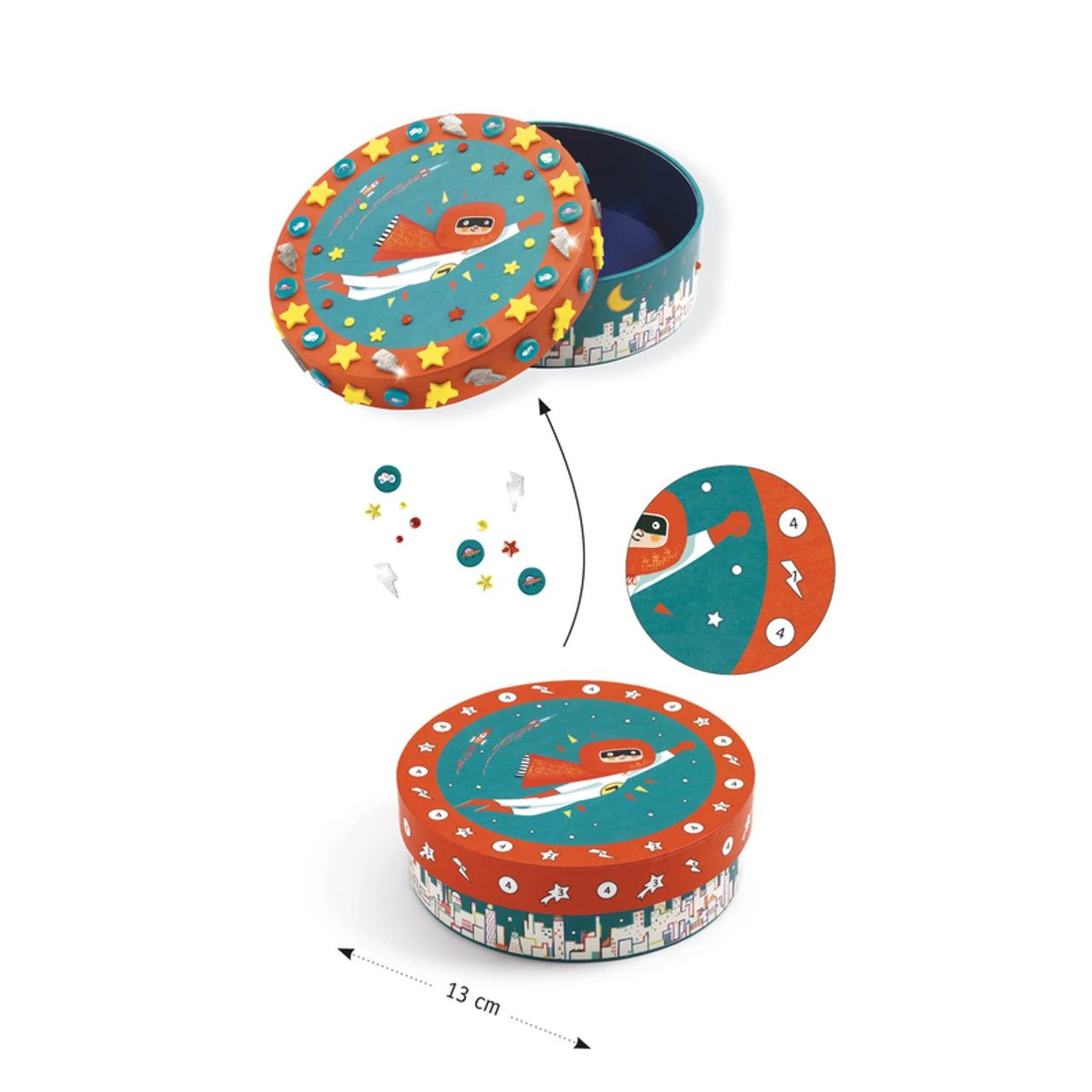 Decorate the beautifully illustrated small box with the provided self-adhesive mosaics to create a small and special treasured box. The mosaics provide a metallic touch to the small box. Great for playdates, school holiday activities, birthday parties or crafting days.