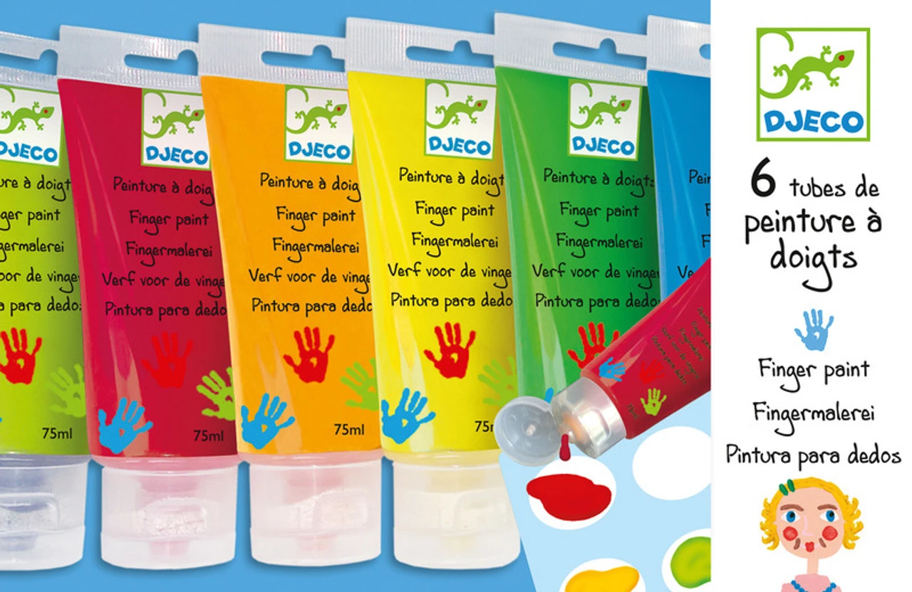 Get hands-on and creative with this art supply kit by Djeco. This kit features 6 tubes of finger paints for hours of creative play.