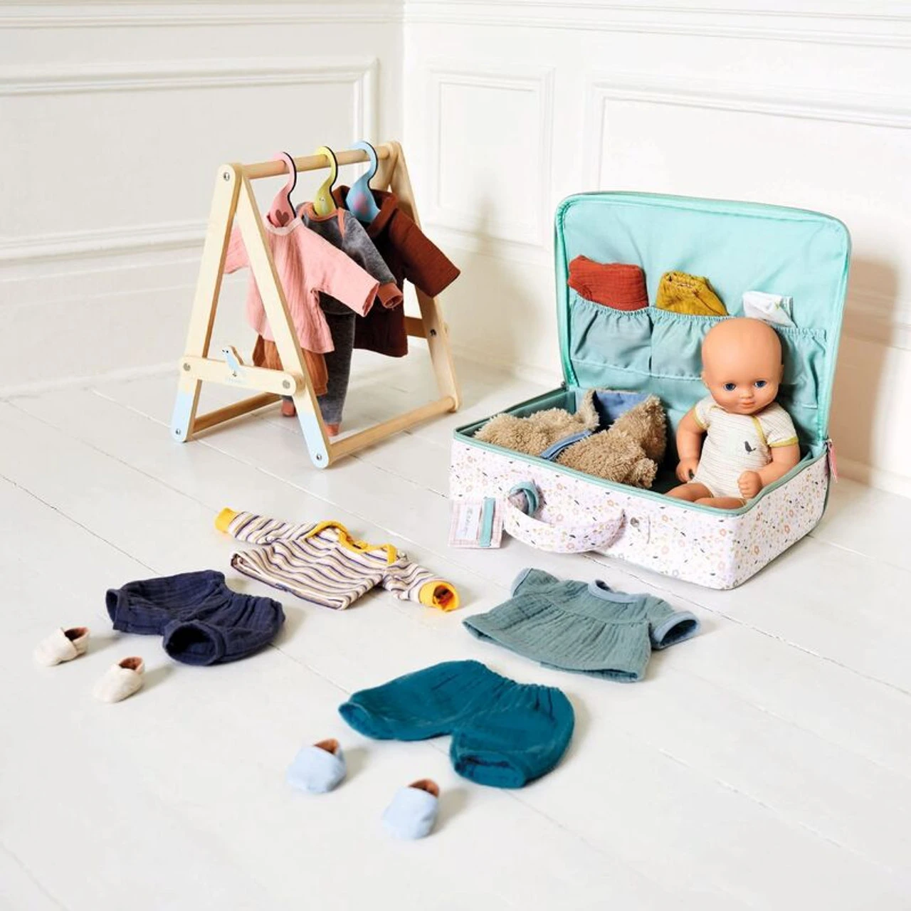 Keep baby dolls comfortable and cool in this stylish 3 piece-outfit consisting of bloomers, top and bonnet. Designed to allow little parents to easily dress their doll thanks to the elastic waistband in the bloomers and velcro in the top. Suitable for dolls sized from 30 to 34 cm.