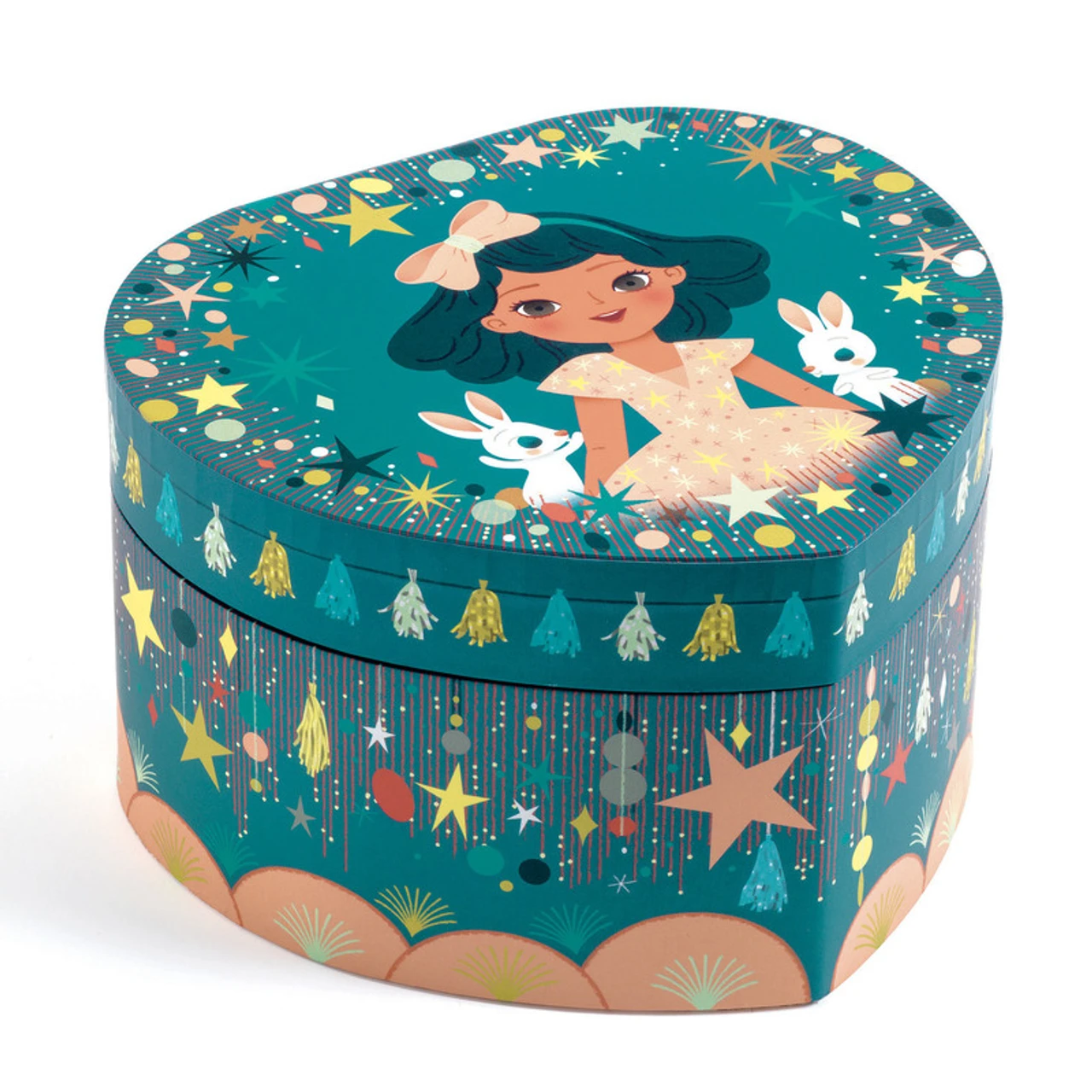 A beautifully illustrated heart-shaped music box to store jewellery and treasures. Turn the crank, open the box, and listen to Johann Strauss’s “Stories from the Vienna Forest”. The design features an interior lined with soft velvet and a melody that lasts approximately 2.5 minutes.