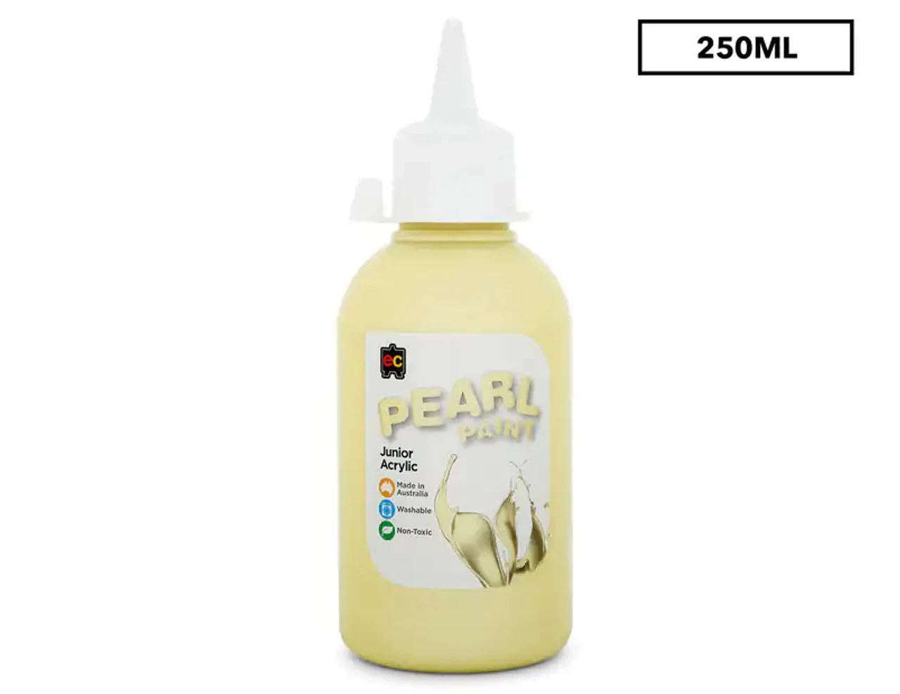 Australian made shimmering Pearl Paints by Educational Colours is non-toxic, water-based and made from the highest quality ingredients. Fast drying makes it ideal for younger children. This range consists of 6 colours and is packaged in 250ml environmentally-friendly PET bottles.