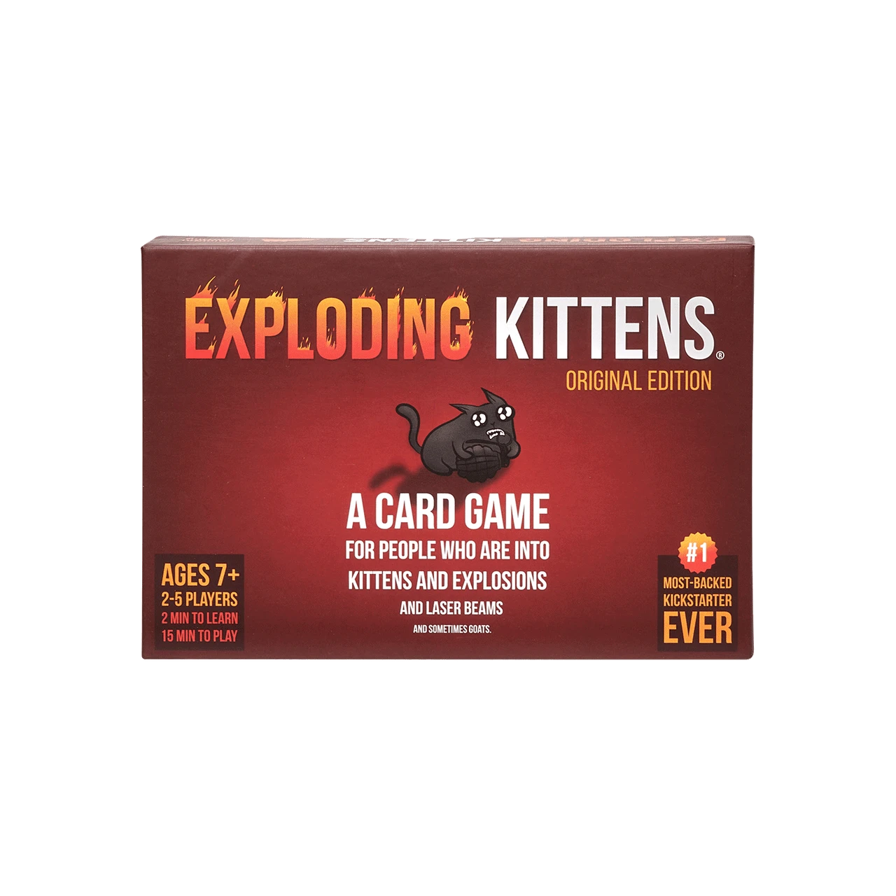 Exploding Kittens is a highly-strategic, kitty powered version of Russian Roulette. Players draw cards until somebody draws an Exploding Kitten, at which point they explode and are out of the game. To avoid exploding, they can defuse the kitten with a laser pointer or catnip sandwich OR use powerful action cards to move or avoid the Exploding Kitten. Betray your friends. Try not to explode. The last player left alive wins.