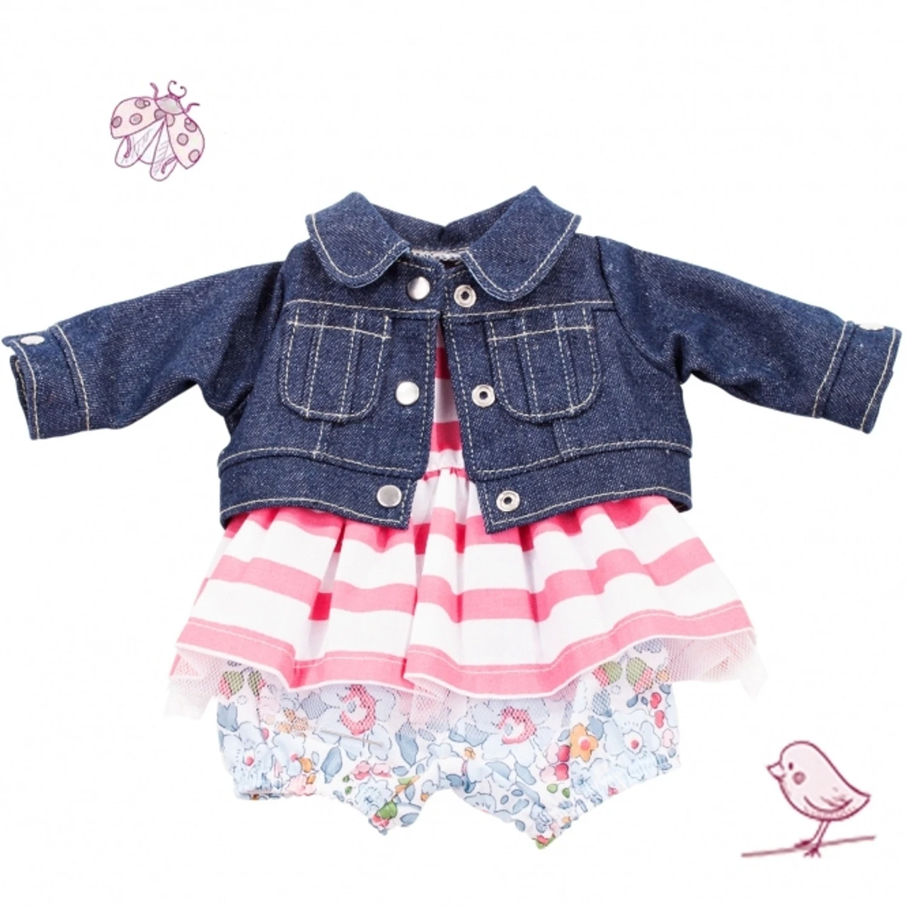 Your baby will love this combination. Flowery pants and dress are separate and can be created to new stylish outfits, if coordinated with other clothes. The denim jacket is a basic all time piece you will never want to miss again.
