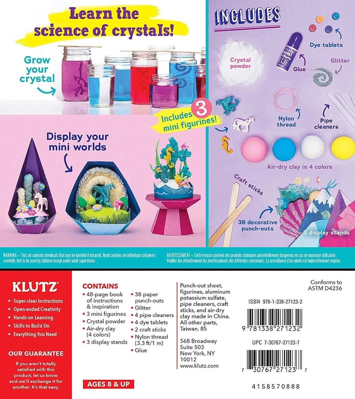 Grow your own magical mini worlds while exploring the science of minerals and crystal formation! Each kit includes materials needed to create 3 different dazzling projects: a dragon’s cave, a unicorn’s forest, and a seahorse’s coral reef. You’ll enchant your family and friends with your rainbow creations!