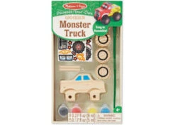 Get ready to rev up the excitement with this easy-to-assemble monster truck kit. Includes wooden truck, wheels, axles, paint, paintbrush, glue, and truck-themed stickers.