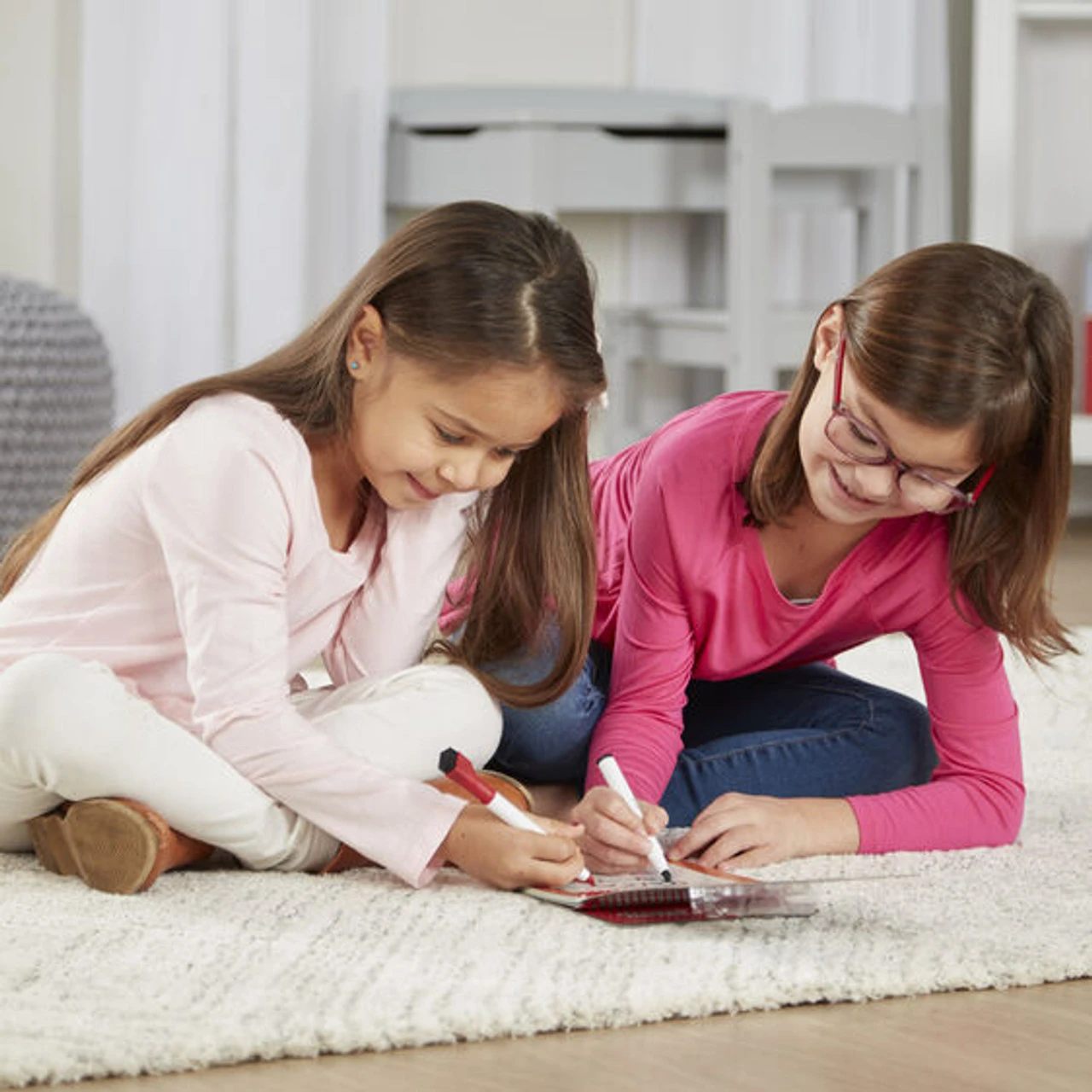 Take fun on the go with this “re-markable” take-anywhere book of dry-erase marker spy games! Choose from 16 different wordplay, creative, and picture spy and detective games for one or two players, including classics like mazes and I-spy, as well as games that are sure to become new favorite challenges, like code-breaking and Crazy Car Chase. Two included dry-erase markers with built-in eraser caps store conveniently in the cover of the spiral-bound book, making it a perfect travel activity for kids six and older. It’s easy to write on, erase, then play again!