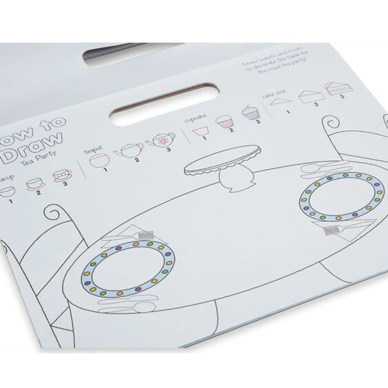 Enchanted Kingdom Playmats coloring and activity pad lets kids bring their creative touch to the table! More than just paper placemats, the pad includes 24 pages of royal-themed coloring, cutting, and creative activities that keep kids entertained and learning. Complete partial pictures, learn to draw, practice patterning and counting, find matching pictures, and much more! The pad has a built-in handle, so it’s easy to bring to a restaurant, in the car, on the go, to the dinner table, or anywhere kids want. The high quality white bond sheets tear cleanly away from the pad and make perfect recyclable placemats.