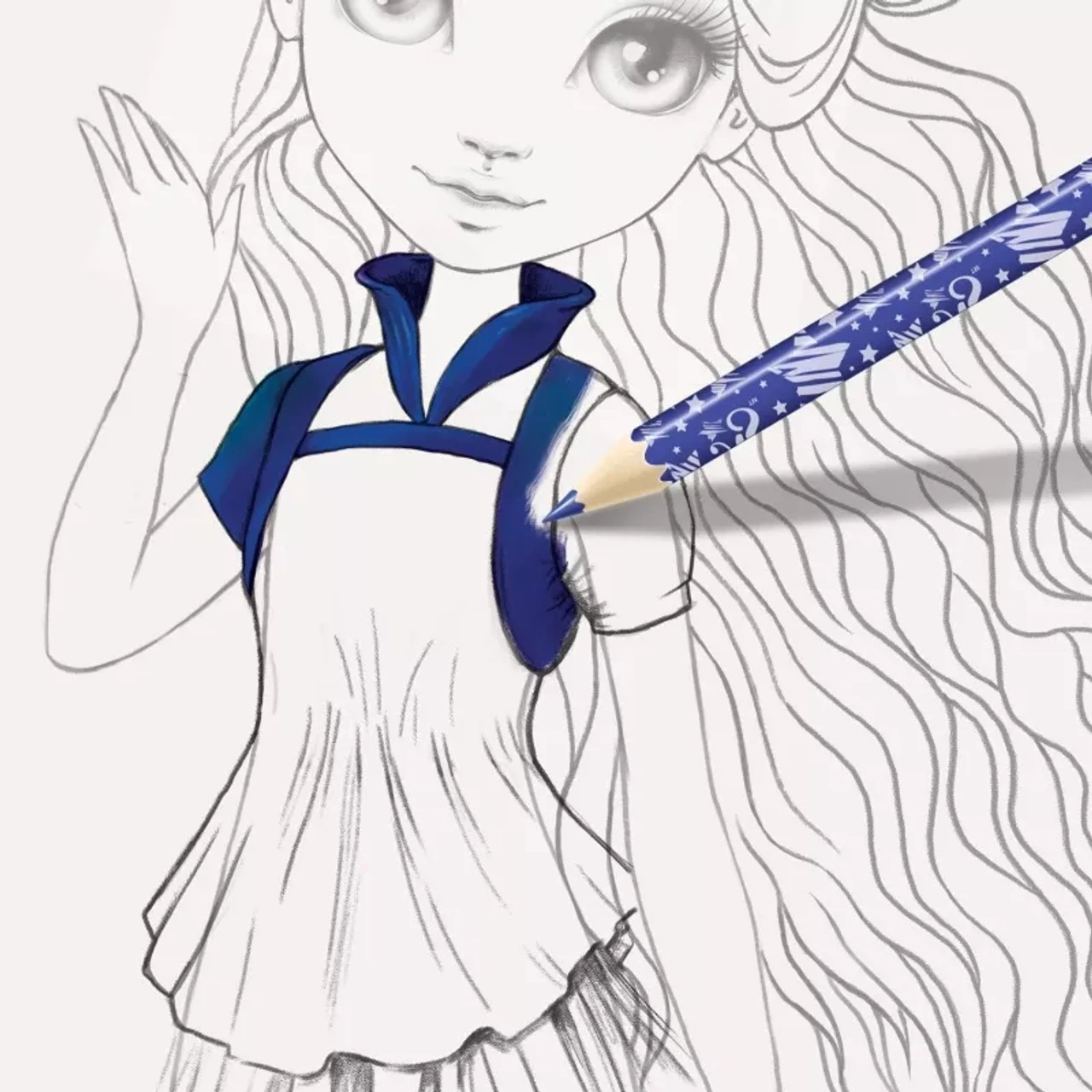 Contents: 45 sketch pages, 80+ stencils, 3 rub-on patterns, 5 colouring pencils, 2 colour & colour-in sticker pages, 8 drawing techniques, Nebulia’s full story, colour theory & instructions