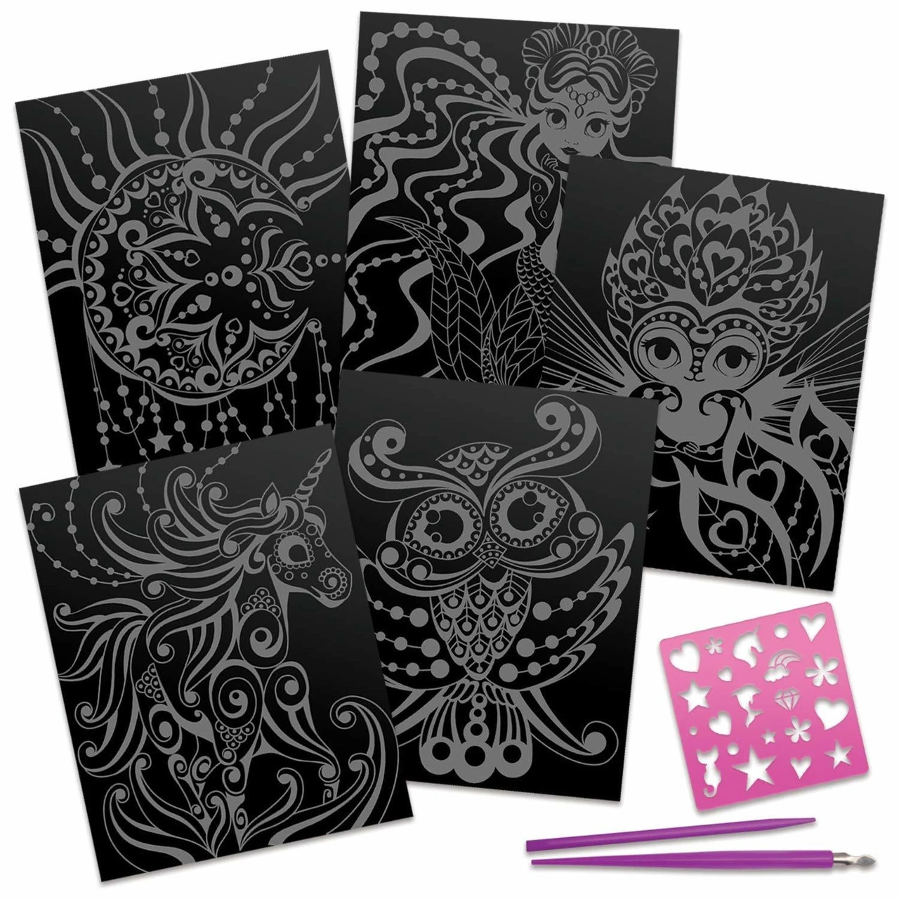 Discover a starry colourful galaxy underneath each of these scratch & sketch boards.