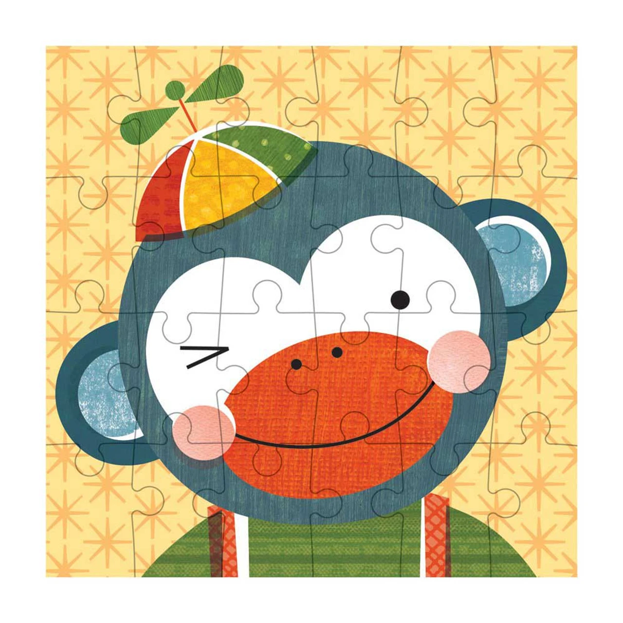 4 sturdy 24 piece mini puzzle featuring vibrant artwork. The puzzle pieces are just right for toddlers. Helps promote hand-eye coordination and printed with vegetable inks