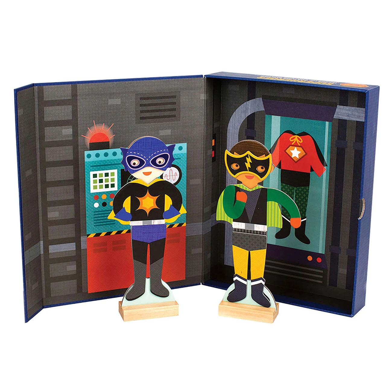 Choose their costumes and accessories with this hero-packed magnetic dress-up set, including two magnetic figures, two wooden stands, 27 magnetic pieces and a secret hide-out. Shhhhh!