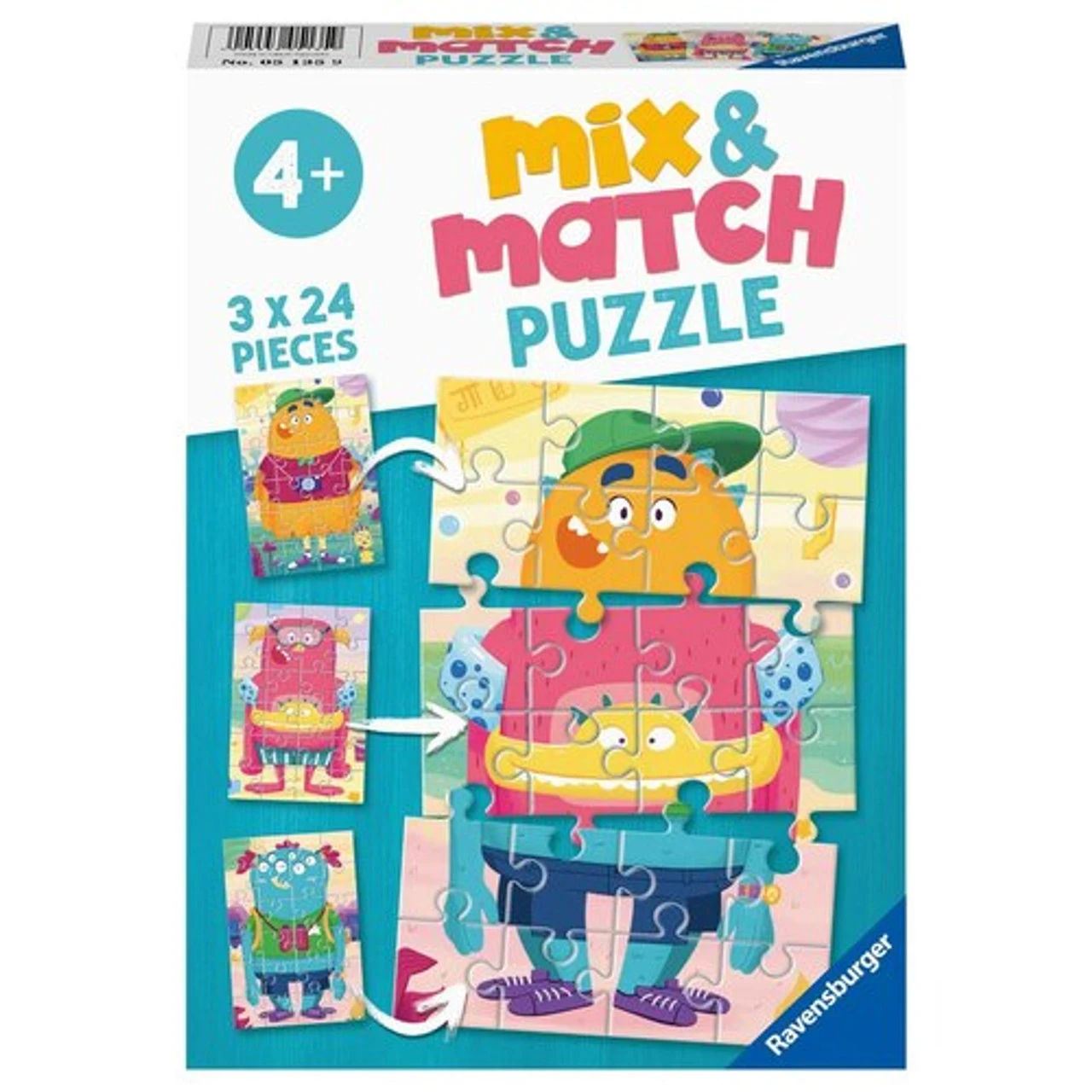 Mix and match the pieces to build different characters with this Ravensburger Mix-up Monsters! Jigsaw Puzzle. Three cute and colourful monsters feature on these mix and match 24 piece puzzles. The head, body and leg sections of each Monster can be interchanged, building a new cute creature! Imagine the pink Monster’s Head, the blue Monster’s body and the orange Monster’s feet! Puzzles for kids of every age help support a child’s development as they play, building skills such as concentration and creativity.