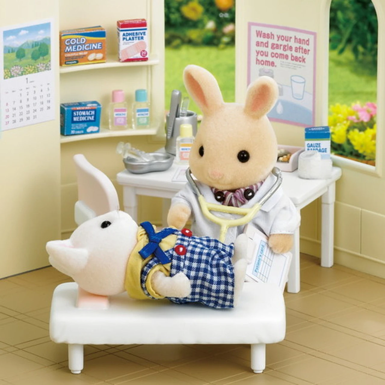 Dr. Alex Periwinkle runs the Country Clinic. Everyone is Sylvanian Village relies on his knowledge to help them get better when they aren’t well. Includes doctor’s uniform, desk & chair, bed, scale, reception desk and more accessories. Figures sold separately.