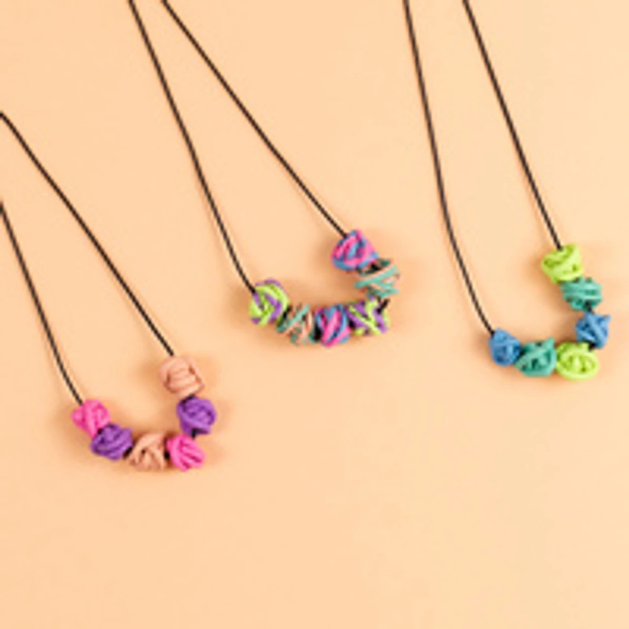 - Jewellery Design Kit including everything required to make three custom, twisty bead necklaces