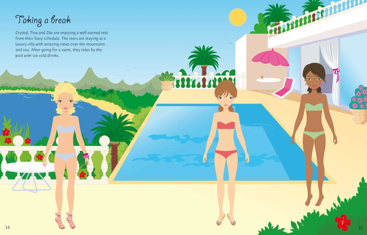 The dolls love travelling the world in their girl band. Use the stickers to dress them for a dance rehearsal, a day in the recording studio, a big performance and their jet-setting world tour. With over 400 stickers of glamorous dresses, cool costumes, instruments, microphones and more.